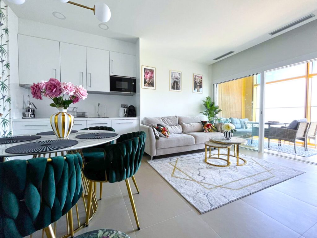 Apartament dysponuje także prywatnym tarasem, z którego rozciąga się malowniczy widok na morze, tworząc atmosferę sprzyjającą relaksowi o każdej porze dnia. Stylowe i przytulne wnętrza, zaprojektowane z dbałością o detale, sprawią, że poczujesz się tu jak we własnym domu, ciesząc się komfortem i wygodą na najwyższym poziomie.