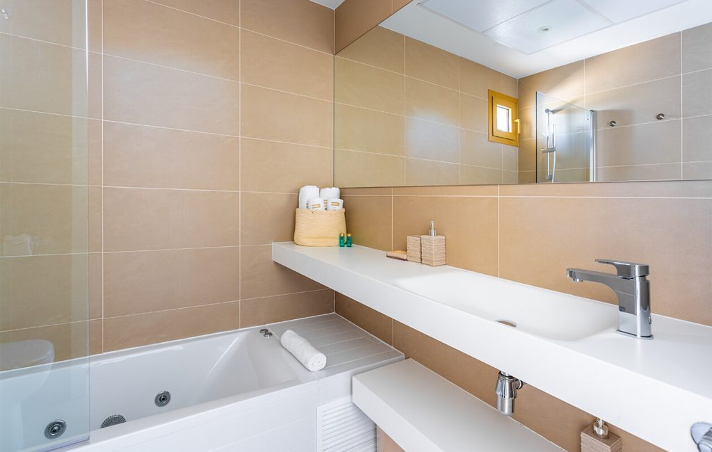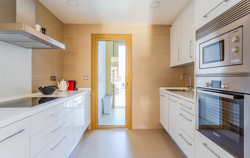 Elegancki apartament o wysokim standardzie, oferujący dwie przestronne sypialnie. Jedna sypialnia posiada duże, wygodne łóżko, idealne na relaks po dniu pełnym wrażeń. Druga posiada dwa pojedyncze łóżka. Nowoczesny salon, wyposażony w wygodny zestaw wypoczynkowy i telewizor, stanowi doskonałe miejsce na wieczorny odpoczynek lub spotkanie z bliskimi. W pełni wyposażona kuchnia, zawierająca najnowsze sprzęty, umożliwia przygotowanie własnych posiłków w komfortowych warunkach.